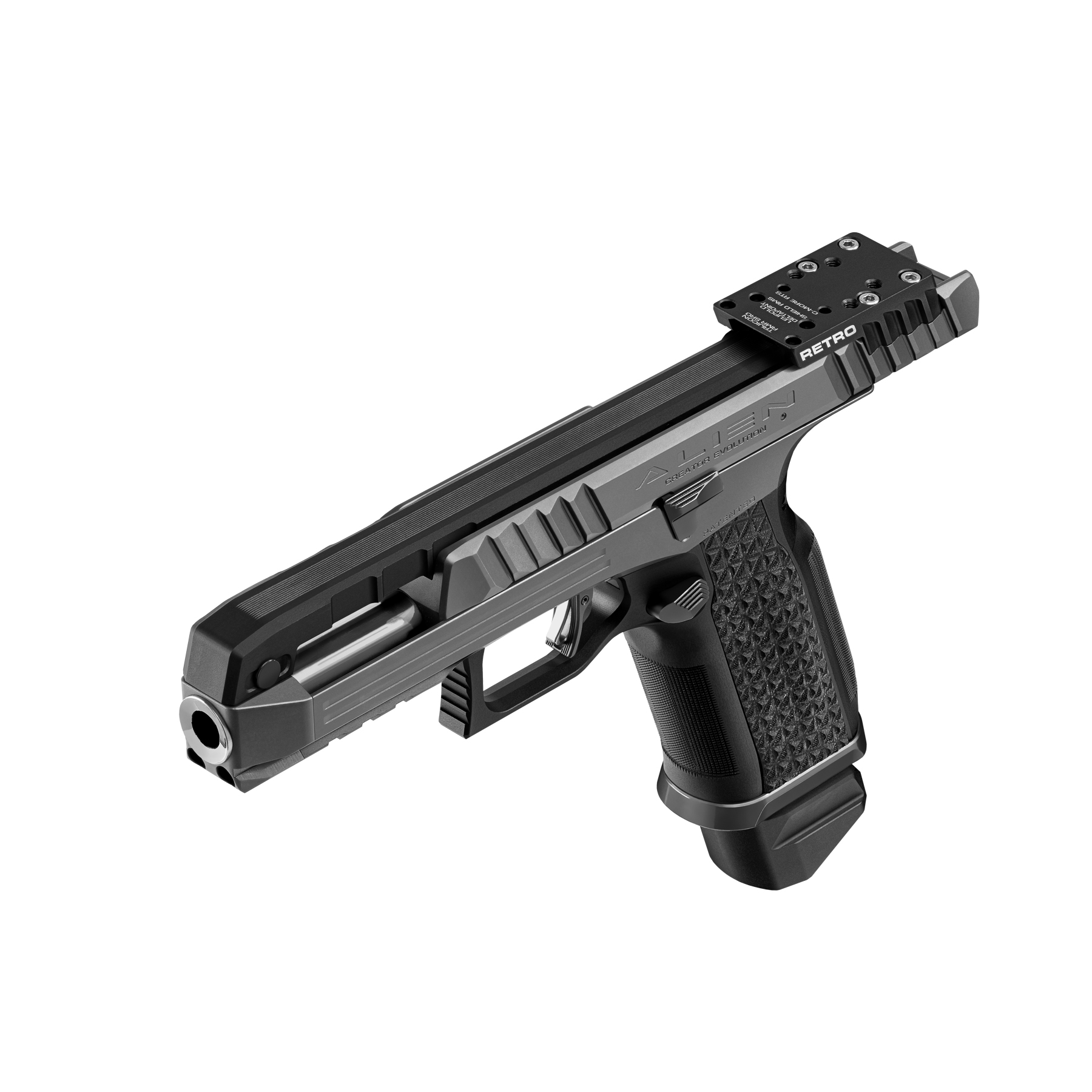 A Laugo Arms Alien Creator Retro egy félautomata pisztoly 9×19 mm kaliberben, amely reciprocáló optikai rendszerrel készült.